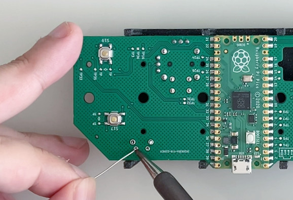 - Check that the button is correctly aligned and flat, otherwise resolder first leg.