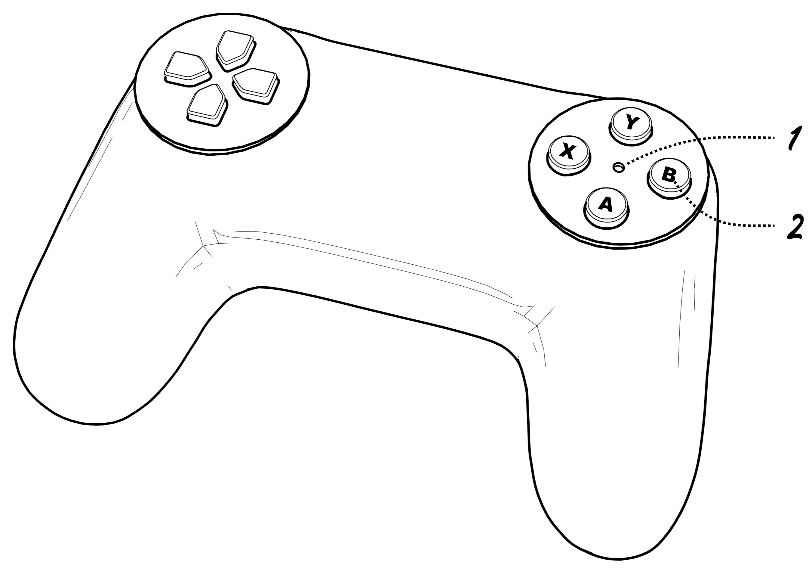 Figure 1 shows a videogame controller with a touch-sensitive surface embedded in-between the typical (momentary switch) ABXY buttons. The size of the surface could be significantly larger (completely surrounding all the buttons) or significantly smaller, though a small surface would limit the potential functionality. This touch-sensitive surface could determine the finger position by using capacitive sensing [1], or just detect if the finger is resting on it with a simple (single resistor) capacitance measurement.