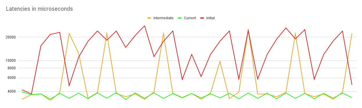In our initial experiments, we fairly quickly achieved latencies of ~30 ms with huge spikes (red line), which was not really suitable for this kind of controller, and a bit disappointing. But after a lot of work (and using BTStack development branch) we now managed to achieve a consistent latency of ~3.5 ms (green line), which is much more acceptable for gaming.